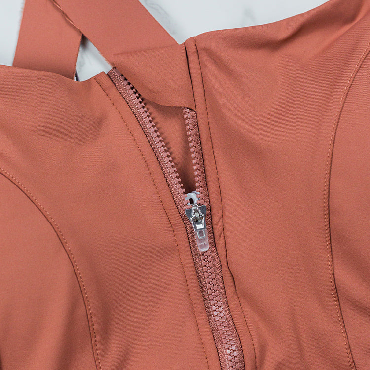✅ Dragkedja - Med en dragkedja fram till, övre och undre skydd för att dölja dragkedjehuvudet, så att den inte gnider mot huden och som är lätta att ta på och av. Den har också ett inre spänne som är gömd för att förhindra att bh:n öppnar sig.