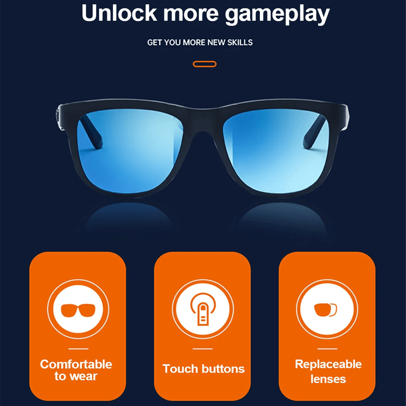 De smarta Bluetooth-glasögonen erbjuder en perfekt blandning av toppmodern teknik och stilren design, vilket ger användarna en sömlös ljudupplevelse och överlägsen ögonskydd var de än går.